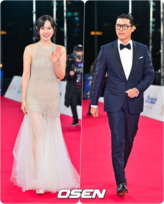 Particularly notable was the attendance of Hyun Bin and Son Ye-jin as a couple. Both were nominated for Best Actor and Best Actress, respectively. Matching the interest, the couple graced the finale of the red carpet event before the awards ceremony. Hyun Bin appeared first in a navy suit with a bow tie and glasses, and Son Ye-jin followed, showcasing her figure in a halter-neck design with mithril embellishments and a mermaid line chassé skirt, reminiscent of a short haircut like the Hime cut.
